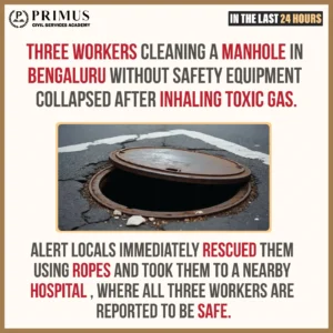 - Unsafe Conditions: Frequent fatal accidents in manholes and drains (472 deaths between 2016–2020 – Safai Karmachari Andolan).
